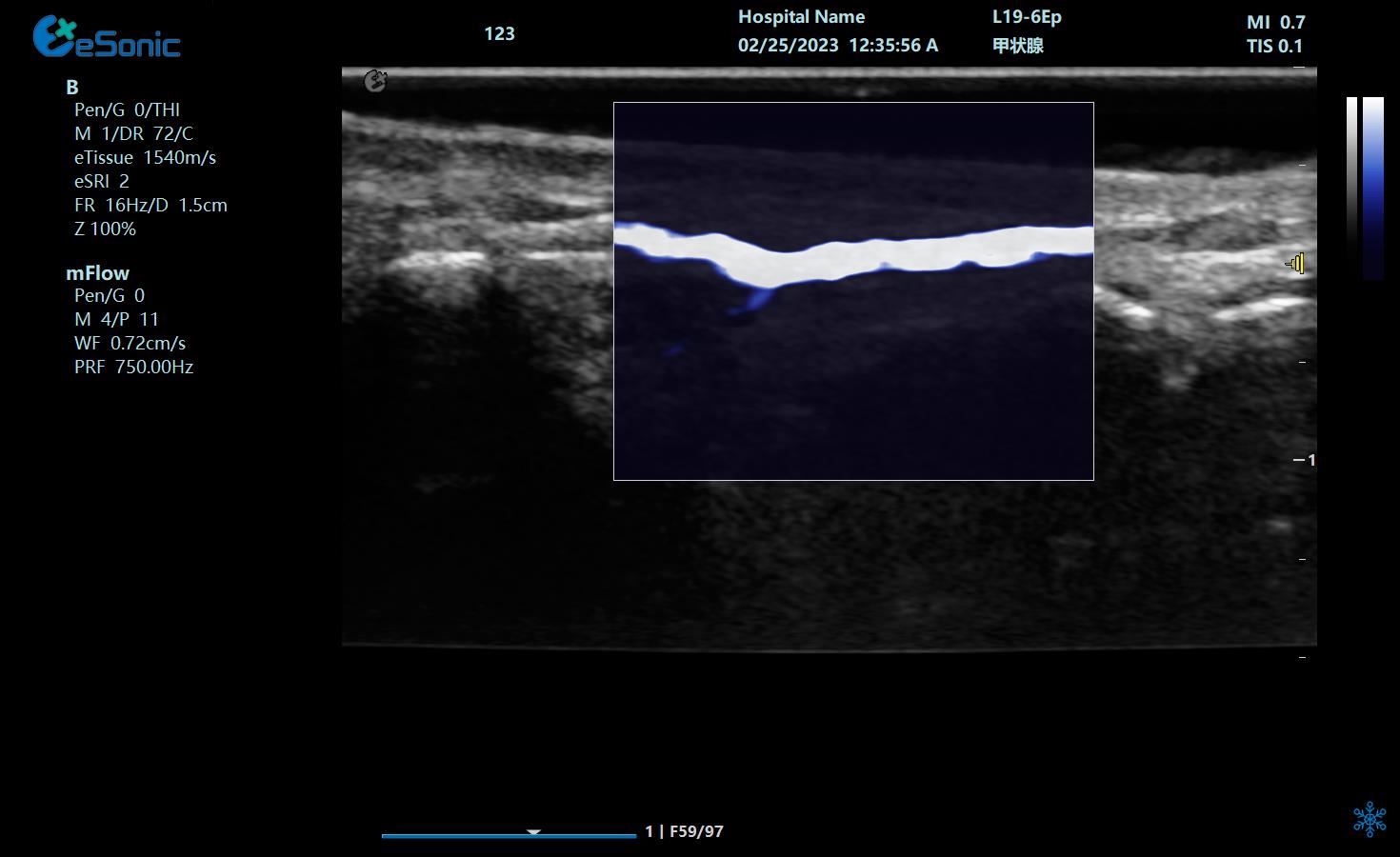 彩色多普勒成像、3D壁滤波原理;血流敏感度明显提升,分辨率达100微米;支持灰阶和微血流量同步测量、可测极低速血流的速度;多种模式,多数据定量