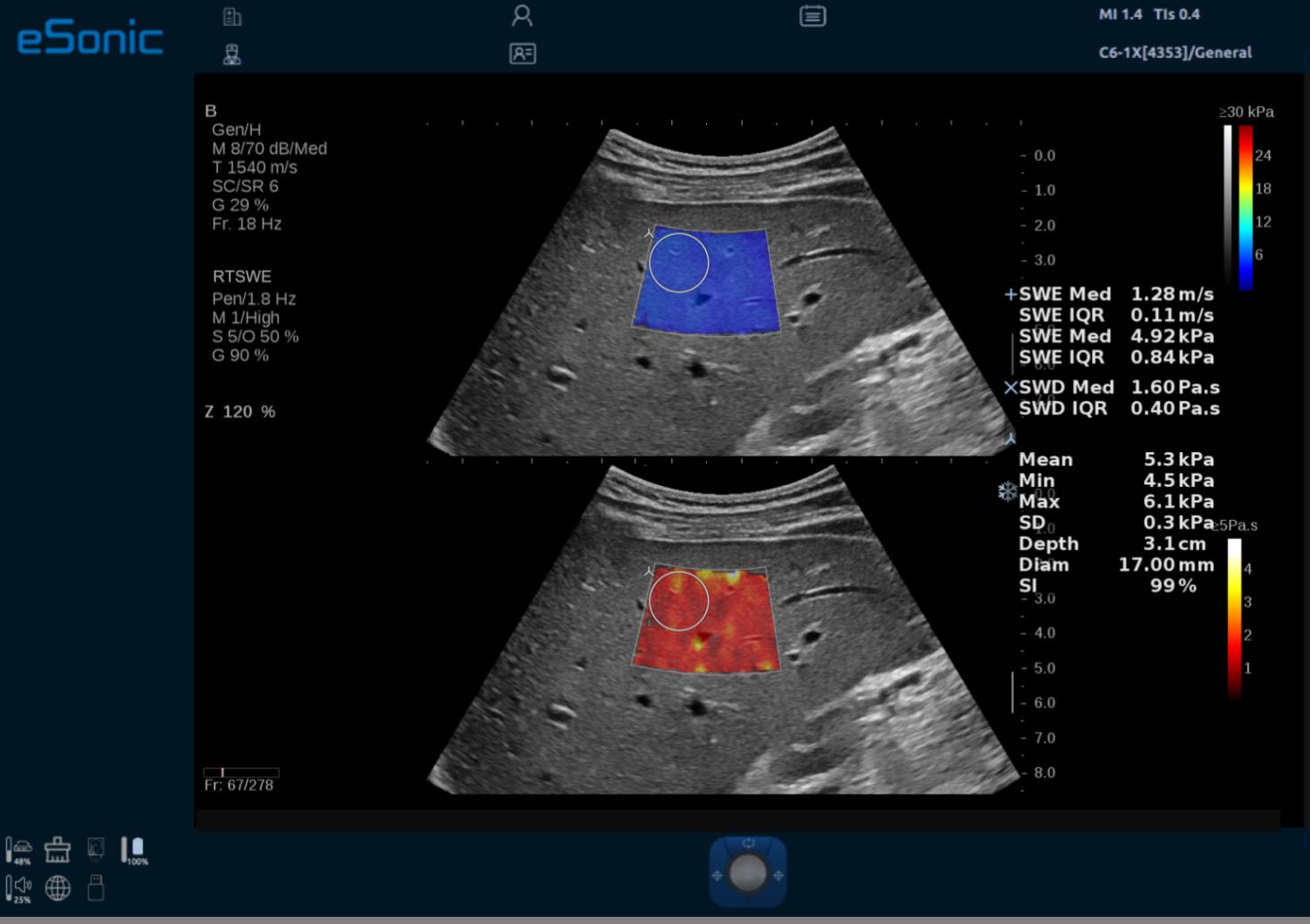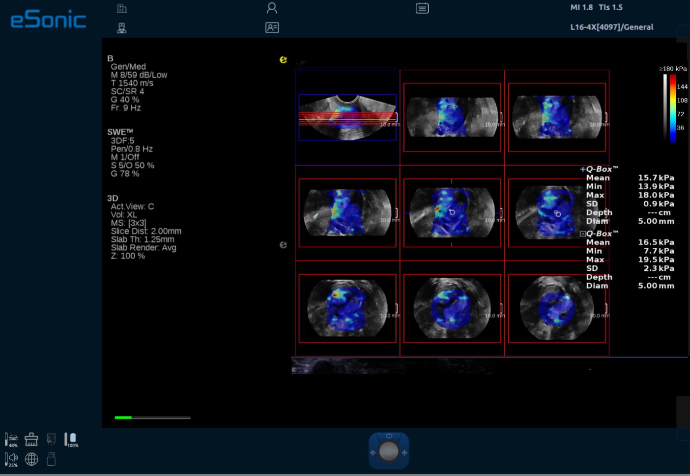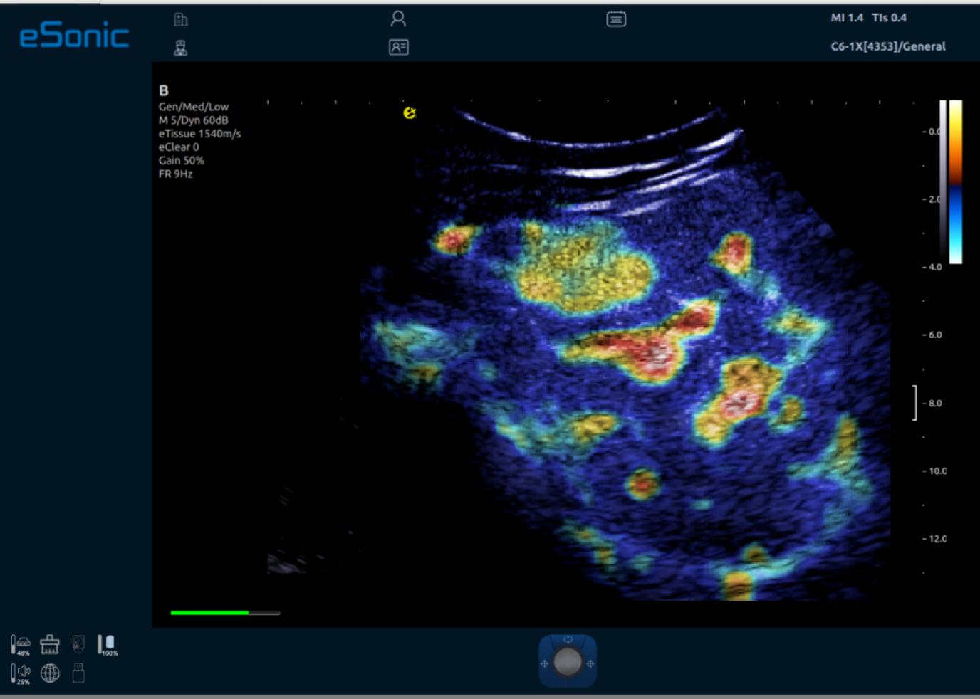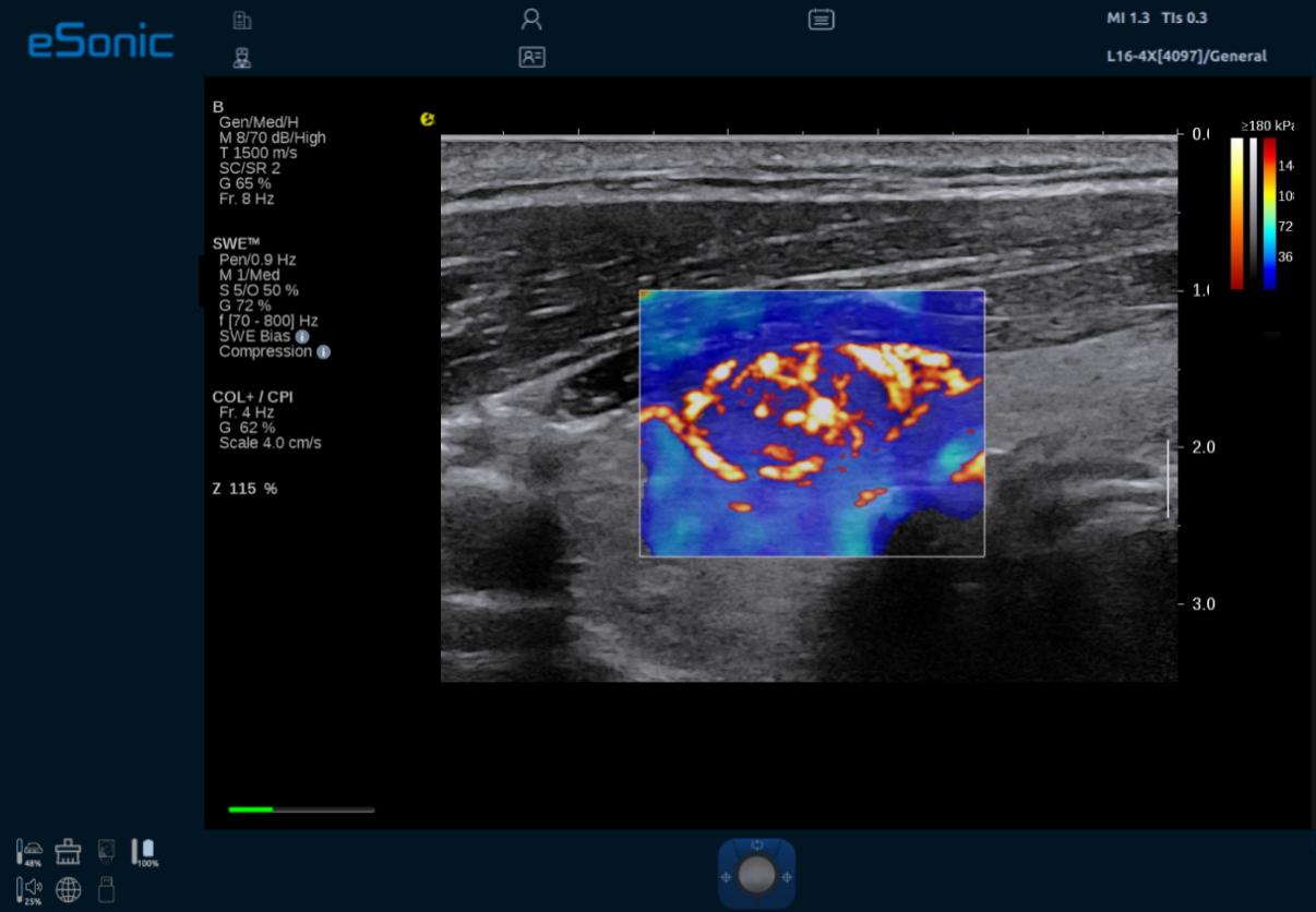 ePascal东风80通过专利的纯软件波束成形和扫描转换技术,消除了传统的硬件负担。无论是宽带宽能力、超高速采集(帧频可达到25000帧/秒)和数据传输速度(可达到10GB/秒),还是高端图形图像处理器(GPU大算力)的首次应用,都为医生们提供了前所未有的诊断信心。这些技术共同作用下,使得图像对比度分辨率显著提升,细节展现得淋漓尽致。其中ePascal东风80融合了RTSWE?实时E成像、QSOS?声速定量成像、ATITM高级声衰减成像、超微血流成像,平面波全息多普勒以及智能穿刺引导等超声领域多项前沿创新技术。